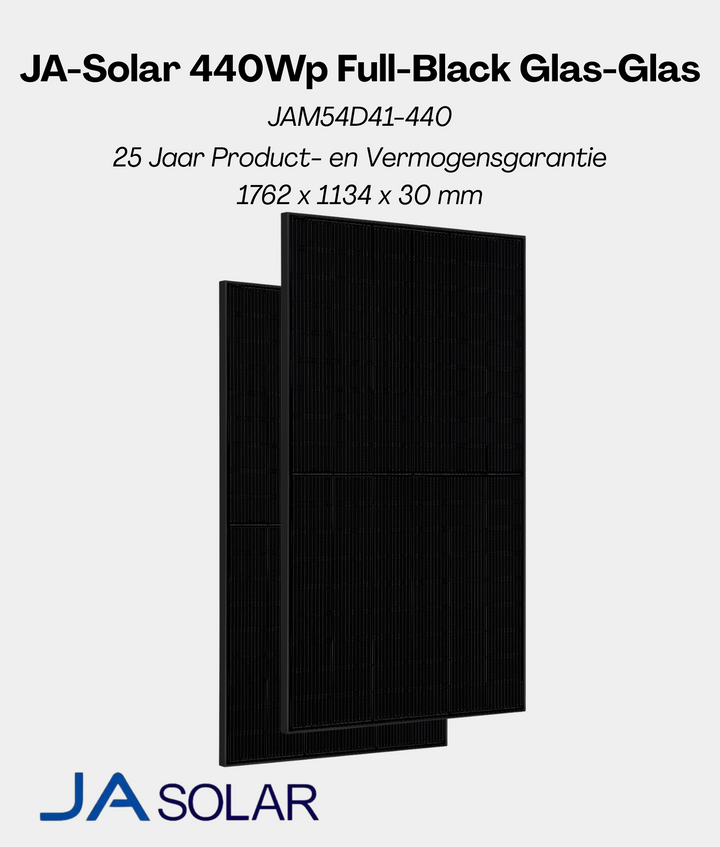 JA Solar panelen en Hoymiles micro-omvormer. Dezelfde merken die installateurs gebruiken. 25 jaar garantie op product én vermogen.